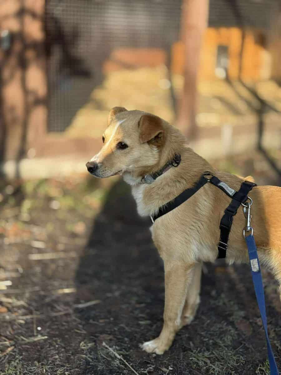 Nowości? Radzi sobie z nimi raz lepiej, raz gorzej – ale robi ogromne postępy. Nigdy wcześniej nie chodził na spacery, dlatego jesteśmy pełni podziwu dla tego, jak szybko się uczy. Coraz mniej boi się samochodów, nie reaguje paniką na rowery czy skutery. Inne psy już go tak nie stresują, choć nadal potrzebuje dalszej, mądrej socjalizacji – nad którą pracujemy.