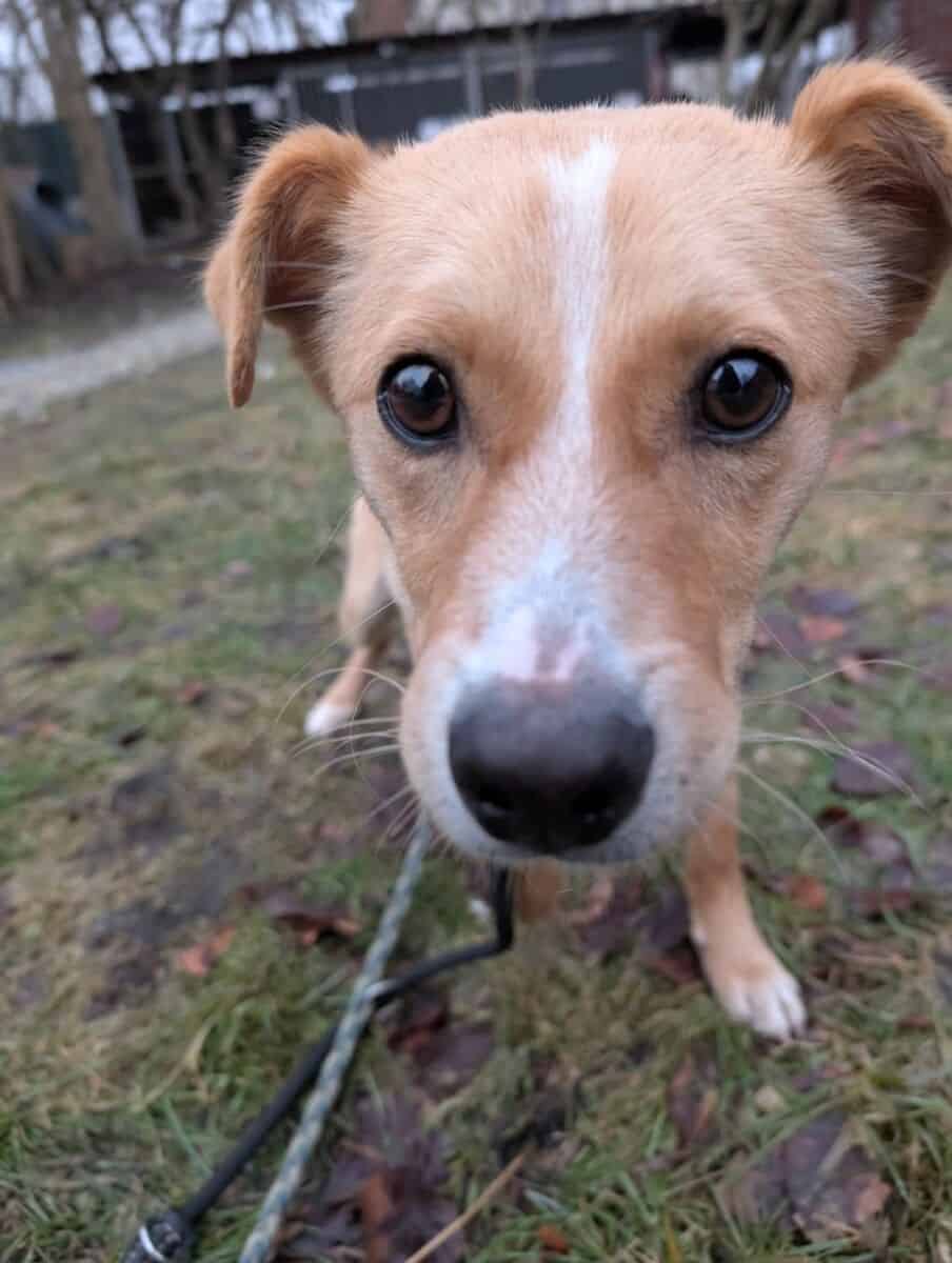 Keks to młody (około1,5 – 2 lata), biszkoptowy chłopak pełen energii i ogromnego potencjału. W swoim poprzednim życiu znał tylko kojec. Dni mijały mu na bezczynności i frustracji – a jedynym sposobem na rozładowanie emocji było skakanie na kraty, szczekanie i piszczenie. Dziś Keks nadrabia stracony czas. Uczy się świata wszystkimi zmysłami – potrafi węszyć przez kilka minut w jednym miejscu, jakby czytał książkę pełną zapachów. To właśnie węszenie pomaga mu się wyciszyć. Kiedy nos pracuje, napięcie znika – przestaje skakać, biegać na oślep czy dyszeć z nadmiaru emocji. Odpoczywa. Uczy się spokoju.